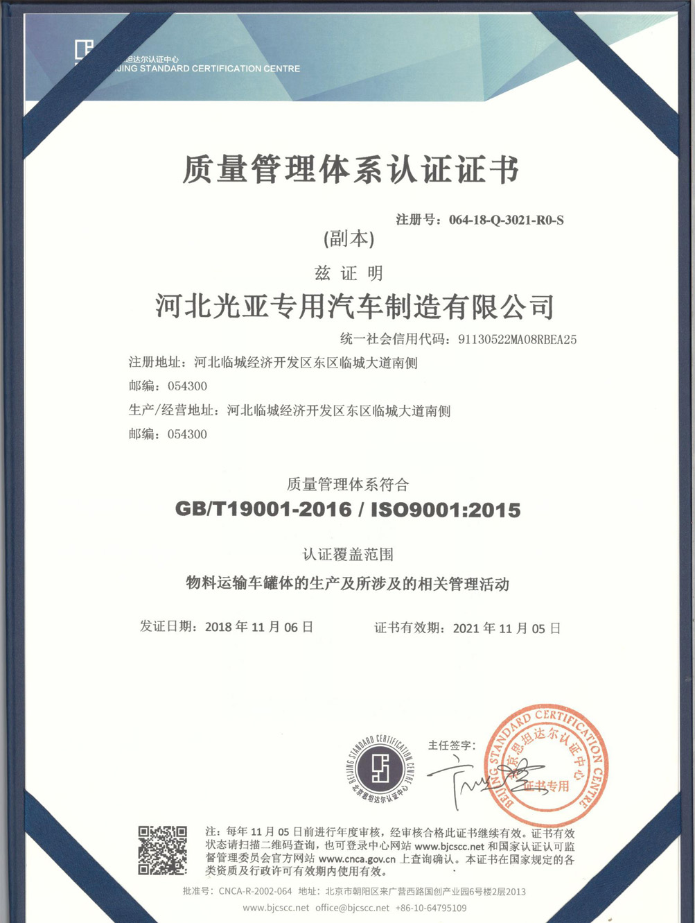 河北光亚专用汽车制造有限公司,成立于2010年,是国家工业和信息化部公告管理企业,位于风景怡人的太行山脚下,属于临城县省级开发区。公司紧邻107国道,京港澳高速(G4、G5)京广高铁穿境而